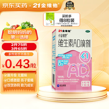 21金维他维生素AD滴剂72粒*1盒 维生素d维生素ad儿童婴儿0-1岁ad滴剂0-1岁新生儿ad 预防和治疗维生素A及D3缺乏症助长高