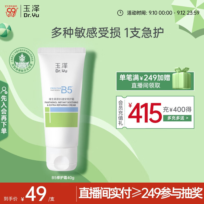 自营玉泽(Dr.Yu)维生素原B5速安特护霜40g(B5修护霜 舒缓面霜 修护屏障)