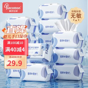 旗舰店棉柔世家(FulCotton)婴儿湿巾新生儿宝宝屁湿纸巾幼儿手口专用80抽带盖 5大包*80抽(共400抽) 80抽 5包