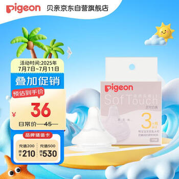 自营贝亲(Pigeon)自然实感第3代启衔奶嘴 宽口径奶嘴 M号-1只装 BA131 3个月以上