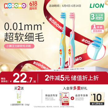 自营狮王(Lion)胖东来同款小狮王儿童牙刷2-3-6岁宝宝软毛牙刷牙膏单支颜色随机