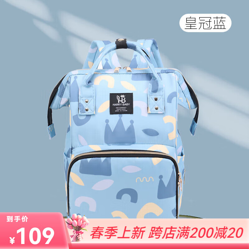 旗舰店婧麒(JOYNCLEON)妈咪包新款大容量妈妈包时尚双肩包背包外出轻便母婴包包 【皇冠蓝Plus】(加密耐磨防水)