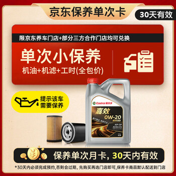 自营嘉实多(Castrol)机油保养单次卡 嘉效全合成 0W-20 SP/C5 4L 30天可用