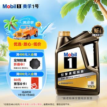 自营美孚(Mobil)金美孚全合成汽机油经典表现 曜石黑金系列 5W-30SP级4L新老包装