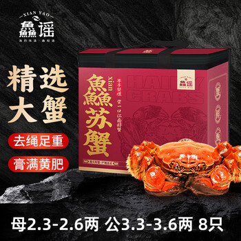 自营【活蟹】鱻谣大闸蟹鲜活螃蟹 公3.3-3.6两 母2.3-2.6两 4对8只 去绳足重 生鲜蟹类礼盒