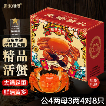 自营【活蟹】漁家师傅大闸蟹公4-4.3两母3-3.3两4对8只去绳足重鲜活螃蟹现货生鲜海鲜礼盒