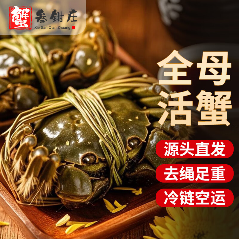 自营【活蟹】蟹叁钳庄 全母2.3-2.6两 8只 现货大闸蟹鲜活六月黄鲜活螃蟹中秋礼盒源头直发