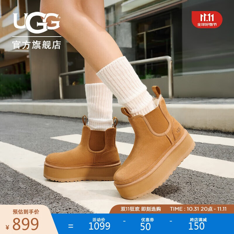 自营UGG秋季女士舒适纯色厚底雪地靴 1134526CHE|栗色38