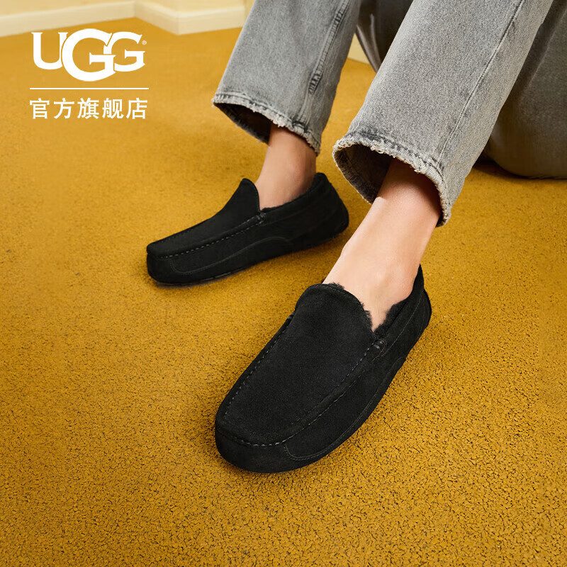 自营UGG秋季男士舒适平底圆头纯色一脚蹬休闲懒人鞋 1115149BLK|黑色43